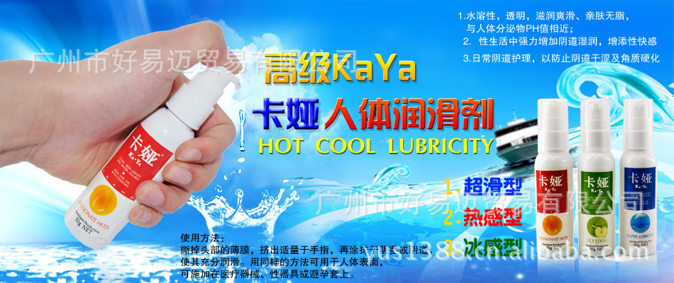 1.KA-YA is a kind of water-soluble Liquid. It's transparent,refleshing, no fat, skin-friendly,not greasy and closed to body PH.