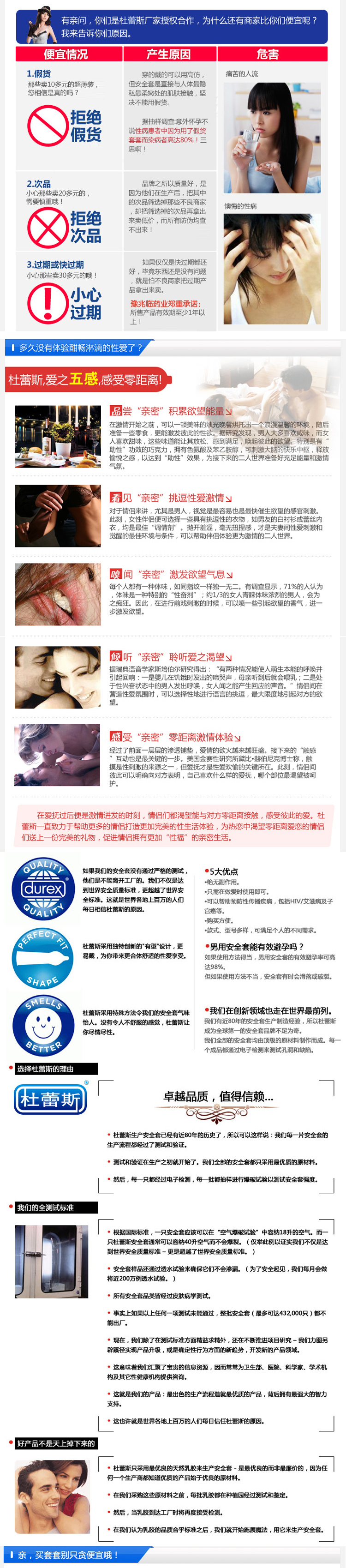註意:認準正品!做足安全措施,請勿相信那些一盒10隻隻賣幾塊錢的套套,那些多數是劣質產品,請消費者擦亮雙眼,珍惜自己的身心健康~~80%用避孕套還沒能避孕成功的人就是用瞭劣質套套,原因親你懂的~~~