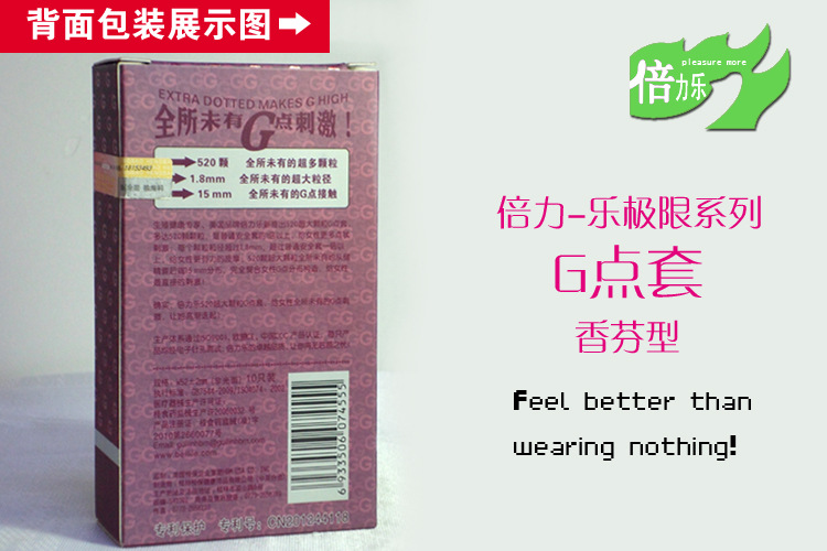 【功效】本品能夠安全有效避孕。在正確使用方式下,可降低感染艾滋病和其他*病的機會,例如衣原體、生殖道皰疹、淋病、梅毒等。使用時無任何異物感,能最充分的激發快感。倍力樂 -- 比不帶套更好的感覺!【規格】10隻裝【標稱長度】180±5mm【標稱厚度】0.049mm【標稱闊度】52±2mm (直徑33mm)