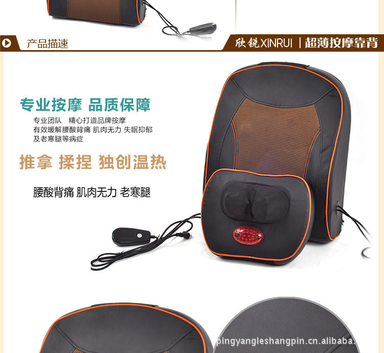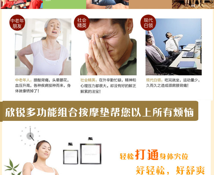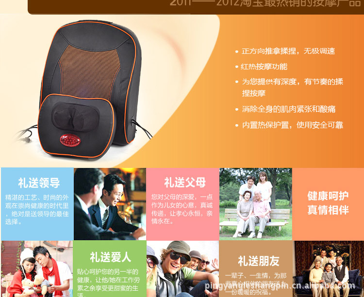 中醫認為“痛則不通,通則不痛”,本產品的功能就是針對頸、腰部的推拿、揉捏,通過紅外線的熱療,溫升輻射,藥磁電療按摩部位產生效應,使經絡氣血暢通,使鐵元素循環有序,調和陰陽氣血加快損傷細胞的再生,從而達到除祛疾病,緩解疼痛和保健強身之目的。