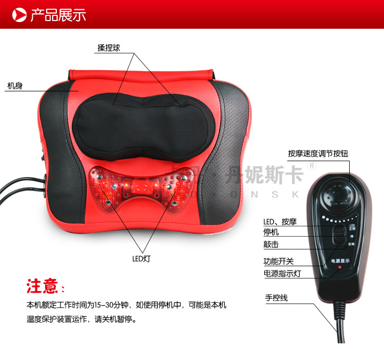 產品說明:采用兩個高凸起按摩頭,按摩腰部、頸椎、手臂、大腿、小腿等部位護理指壓、推拿、揉捏等按摩手法,促進血液循環,肌肉放松等效果。