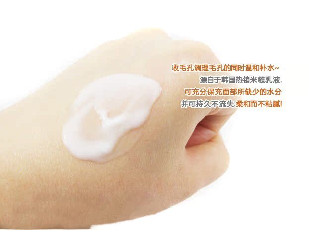 收毛孔調理毛孔的同時溫和補水~源自於韓國熱銷米糙乳液.可充分保充面部所缺少的水分並可持久不流失.柔和而不粘膩!