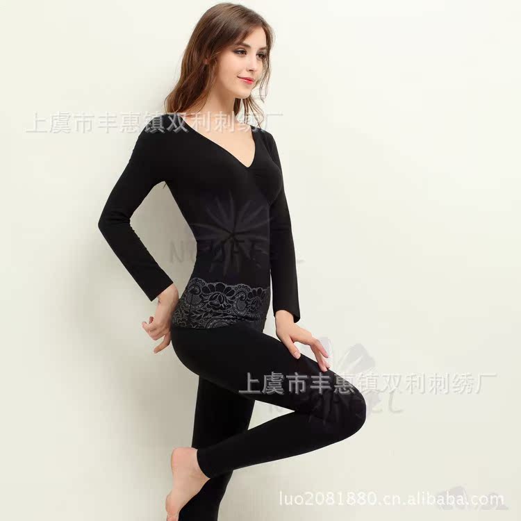 廠傢供應正品秋冬新款保暖內衣套裝 美體加厚V領印花女式內衣套裝