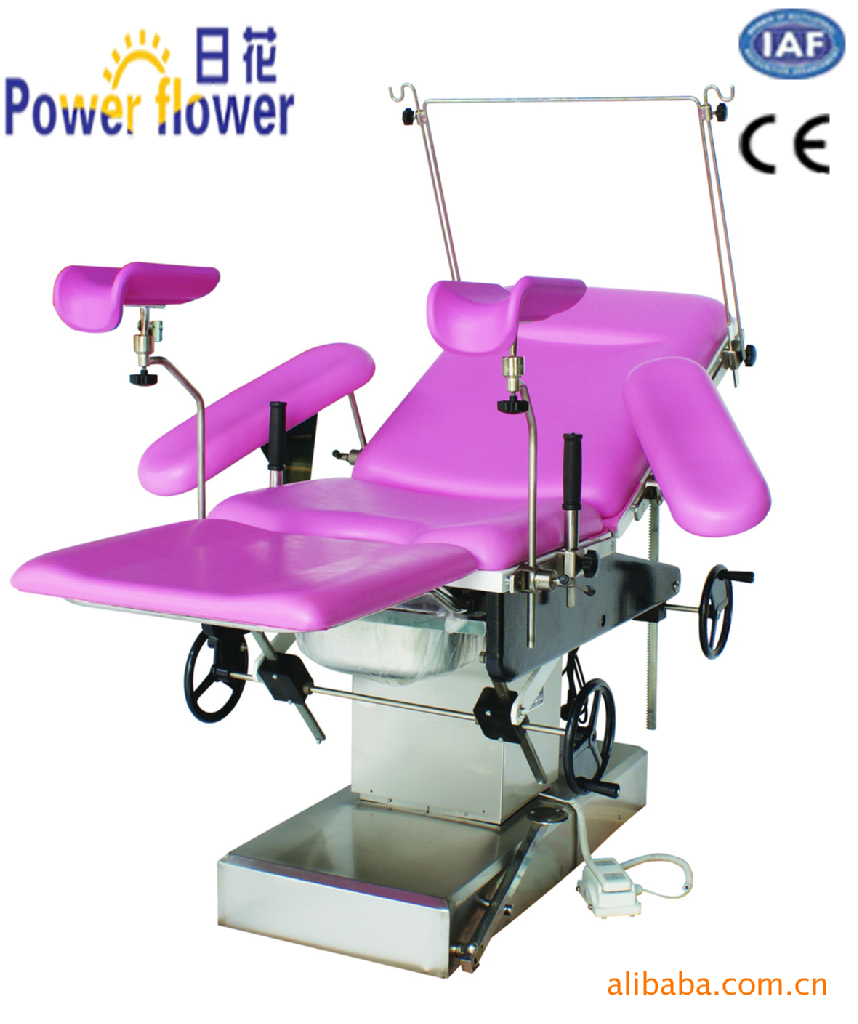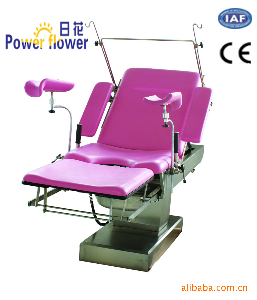 該床前後傾,上下升降均由電動推桿實現,操作靈活,安全可靠,背板采用手動氣彈簧結構,角度可調,配有隱藏式活動輔助臺面,方便醫生和助產人員操作;所有外罩,臺面板,污物盆均為不銹鋼制作,外表美觀,易於清潔.