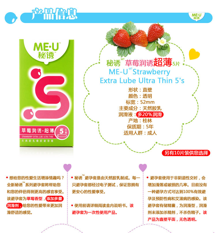 杜蕾斯秘誘me-u草莓潤誘超薄【S】5隻裝避孕套安全套 情趣用品
