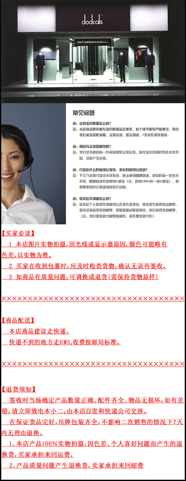 1、本店產品100%實物拍攝,因色差、個人喜好問題而產生的退換貨,買傢承擔來回運費。