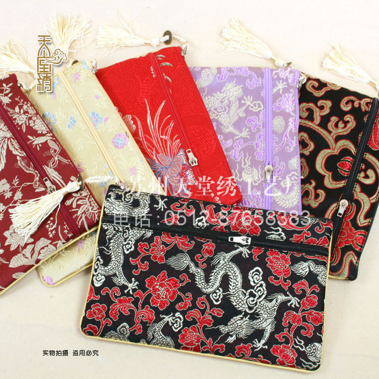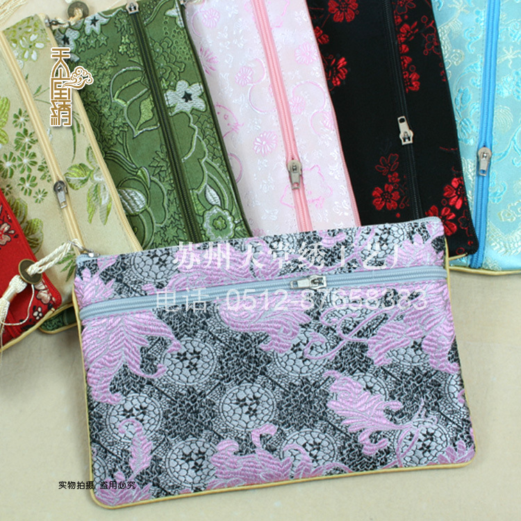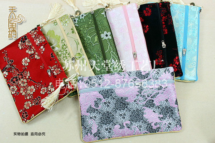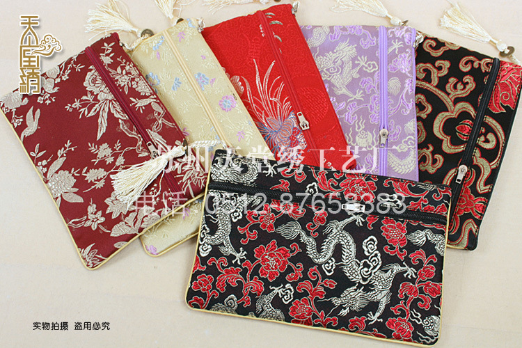 面料為錦緞面料,傳統工藝,個性獨立且不誇張,整體協調又具特征,尤其做工極為精細。復古又時髦的絲錦緞錢包,當你拿著它的時候,不自然的會有一種高貴與華麗的感覺。