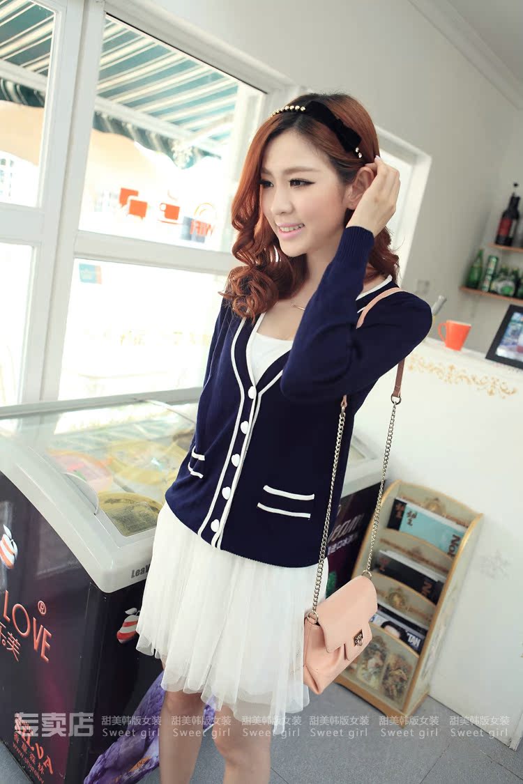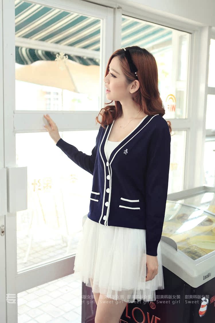 這個款屬於經典爆款瞭,非常簡潔的學院風禁邊開衫~