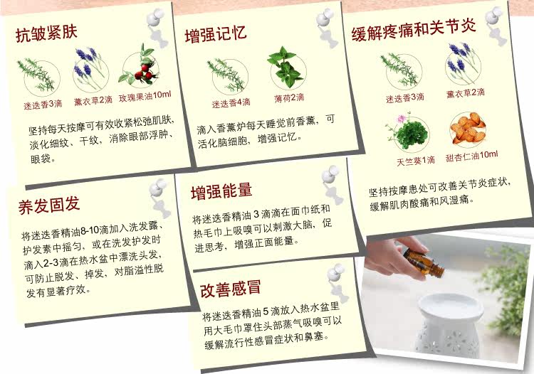 使用註意:單方精油最好不要直接塗抹於皮膚上,除少數如薄荷精油可少量塗抹以外。