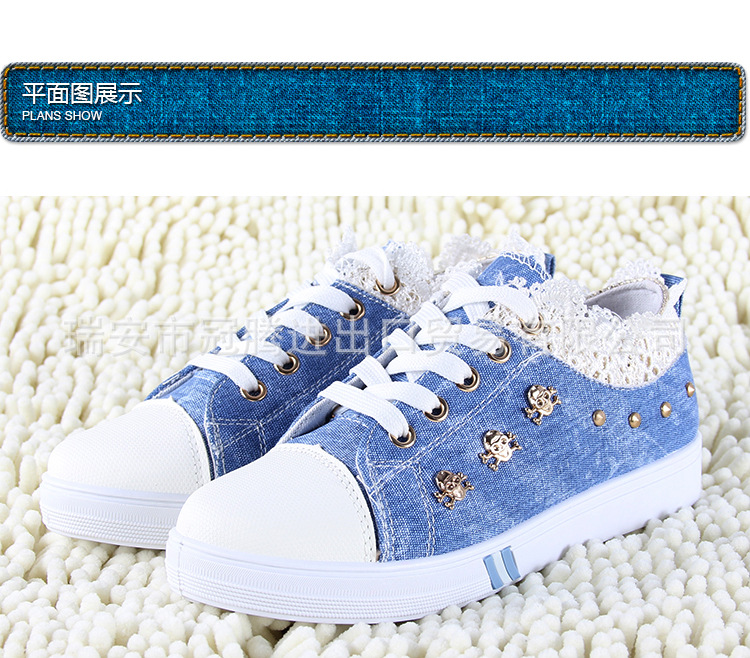 供應秋款女式花邊帆佈休閒鞋 低幫系帶金屬裝飾單鞋耐磨女鞋批發