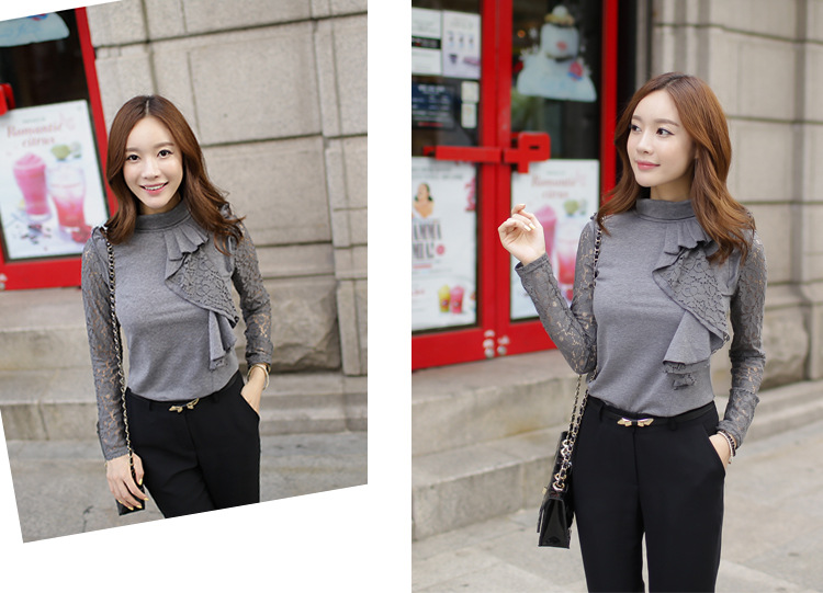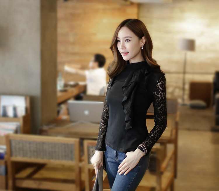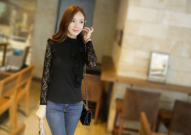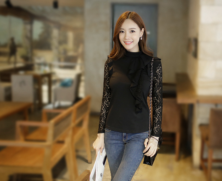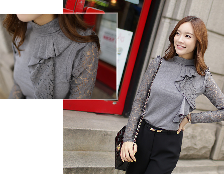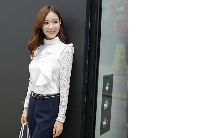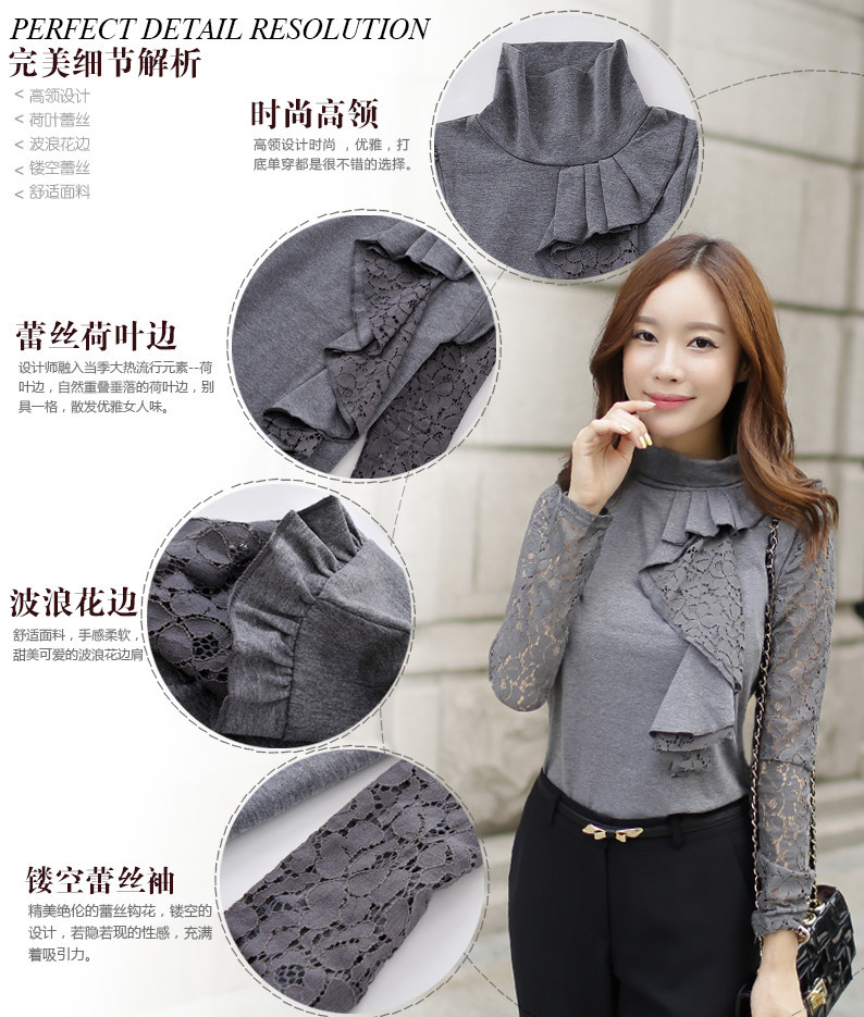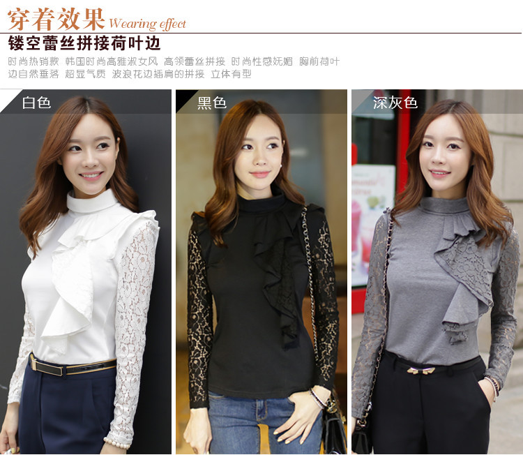 設計亮點: 高領 蕾絲拼接 蕾絲荷葉邊 | |