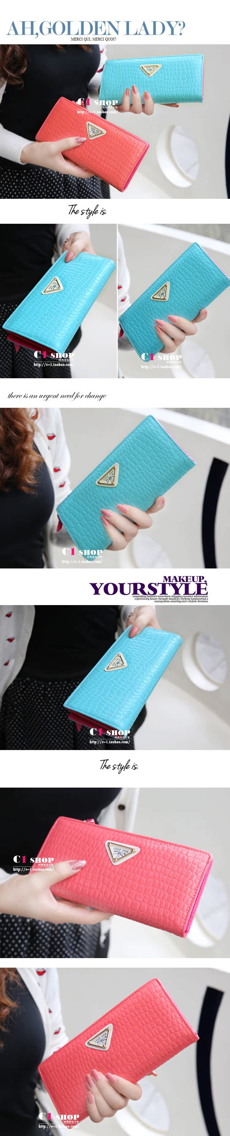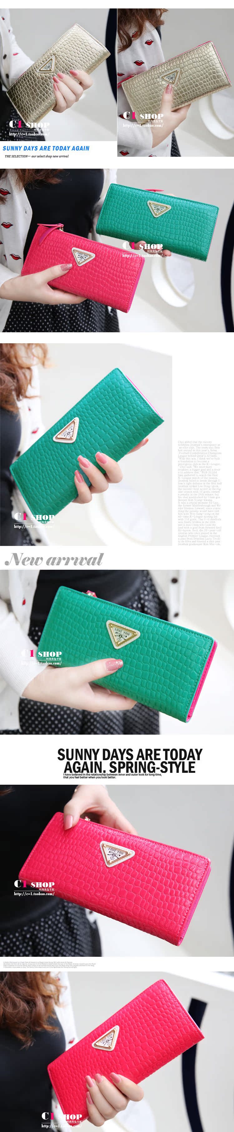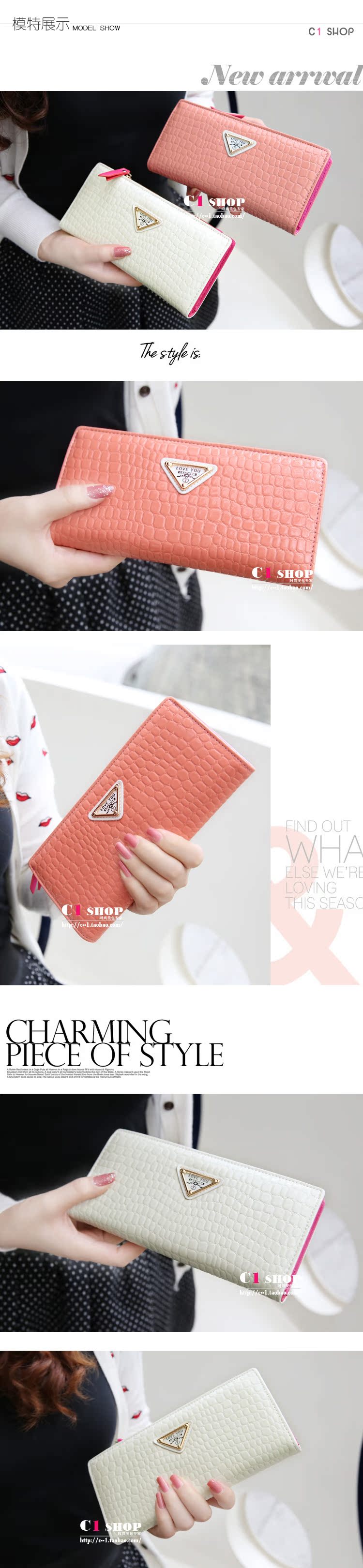 2013韓版新款原創潮嗲時尚撞色石頭紋三角手拿長款女士皮夾子錢包