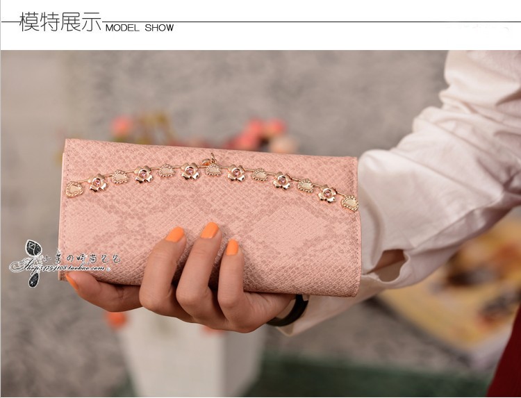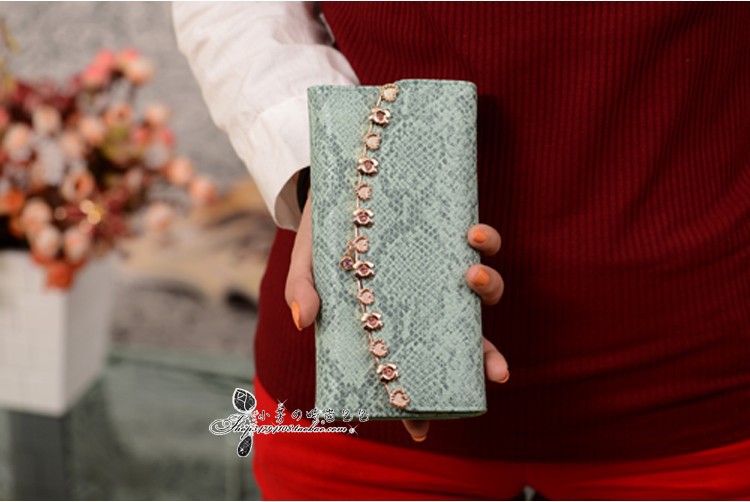 2013新品歐美名媛氣質蛇紋金色花朵韓版長款女士錢包女式手拿包