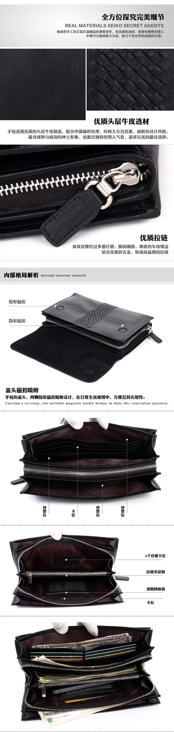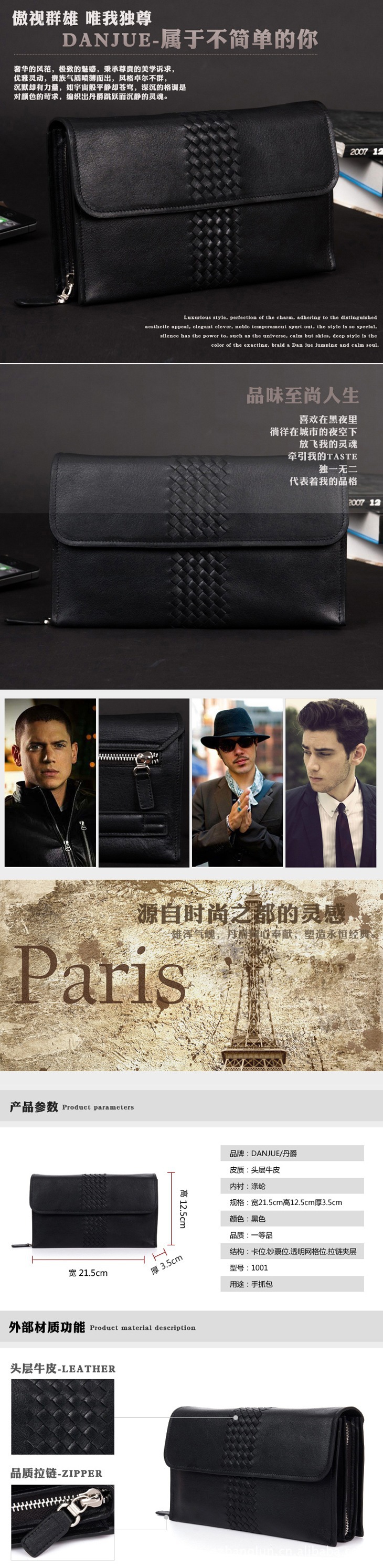定制批發 正品丹爵 頭層牛皮 商務男士真皮手包 手抓包 手拿包