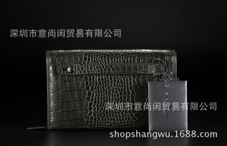 高端商務品牌復古鱷魚紋真皮男手拿包 進口頭層牛皮手包 一件代發