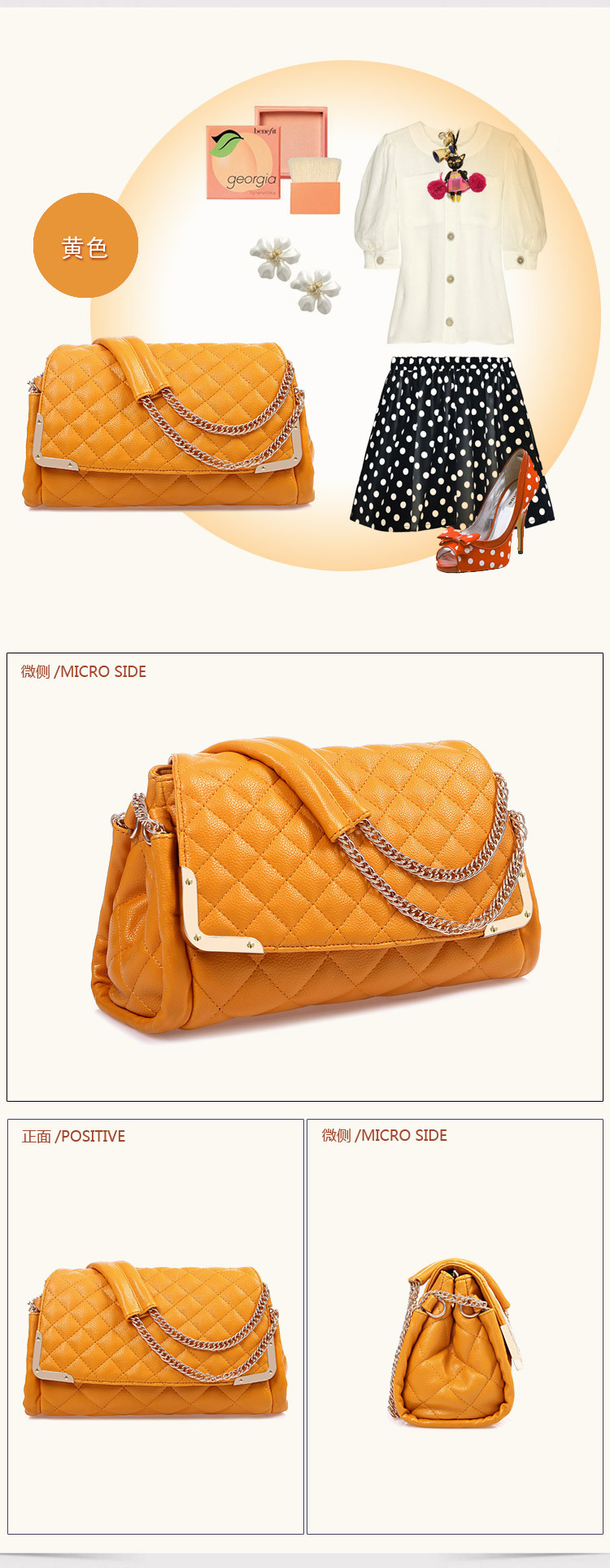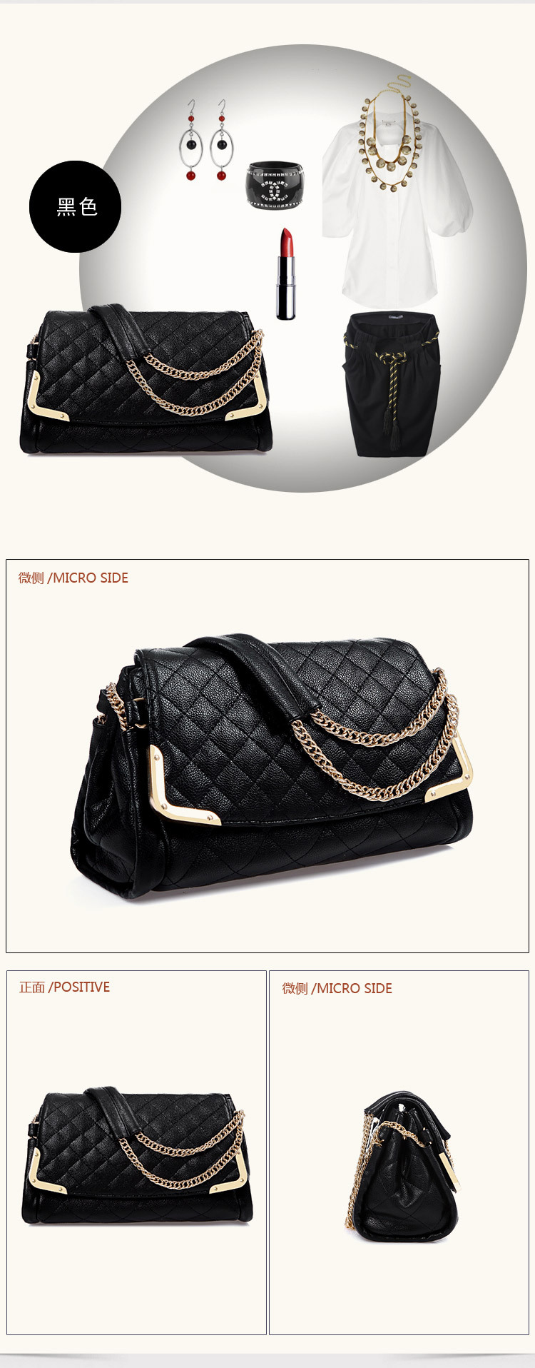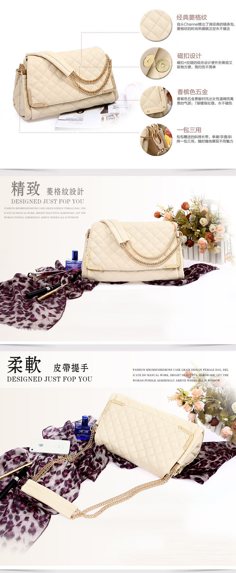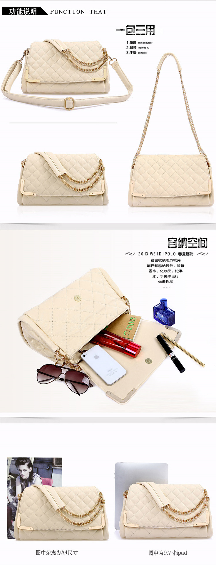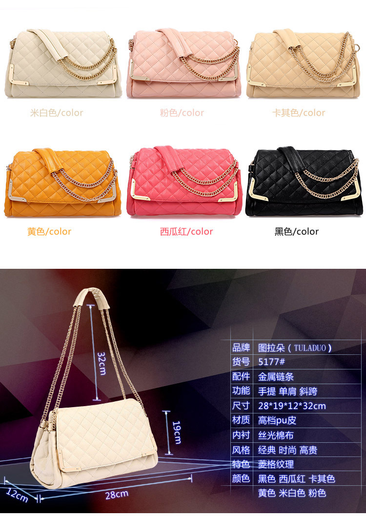 圖拉朵 2013夏季新款潮菱格鏈條單肩斜跨手提三用女包包