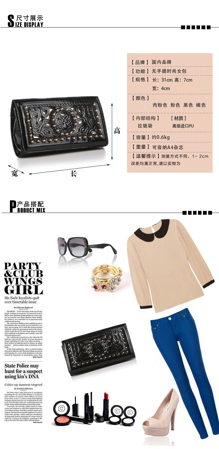 包郵2013春季新款鏤空圖騰復古金屬鑲鉆手拿包定型單肩包潮女包包