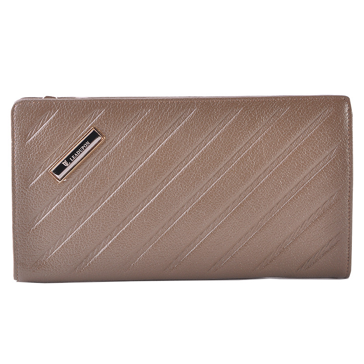 利得普 歐美風真牛皮男士新款時尚格紋手拿包錢包批發 一件代發