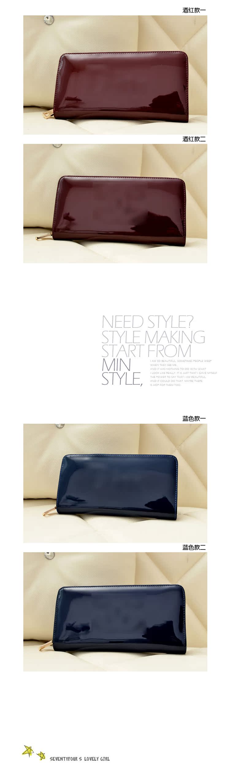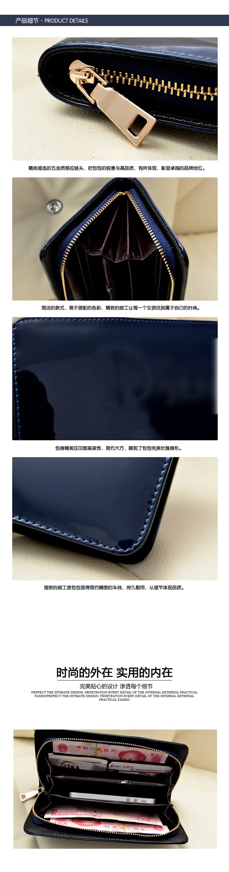 廠傢批發 2013新款歐美范大牌高檔漆皮女士錢包手拿包