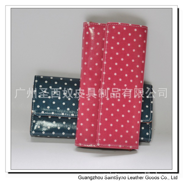 紅底白點/藍底白點 女式仿皮錢包,廠傢直銷, PU女式錢包批發 尺寸:19CM*10CM*2CM (折疊)