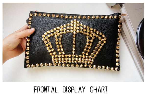 2013新款歐美時尚韓版朋克復古皇冠鉚釘信封包皇冠手拿包斜跨包