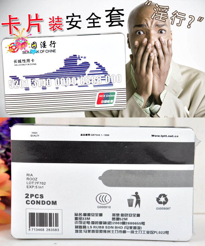 卡片裝保險套逗趣的設計畫面和便攜的包裝設計,可以將保險套輕松的藏在錢包或包包裡,不會被朋友發現。我們年輕我們時尚我們用的套套也不再一樣。