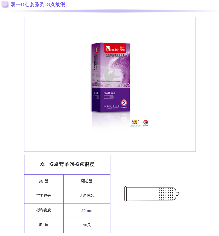雙一避孕套,采用全球最好的乳膠,經電子檢測安全可靠。產品內外觀質量均達到國際同類產品的水平。同時為滿足人們對性生活質量、快樂情趣的追求,每年投入大量人力物力進行產品研發和包裝外觀的設計,使產品不斷滿足市場和消費者的需求。