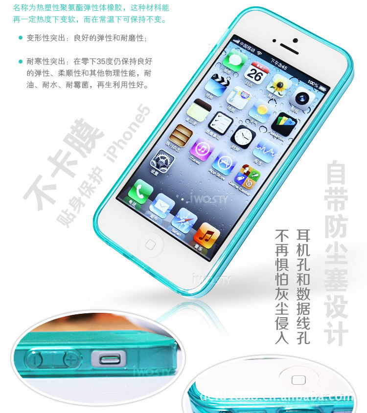 iphone5超薄清水套 tpu軟殼帶 防塵塞 保護殼 保護套 蘋果5代