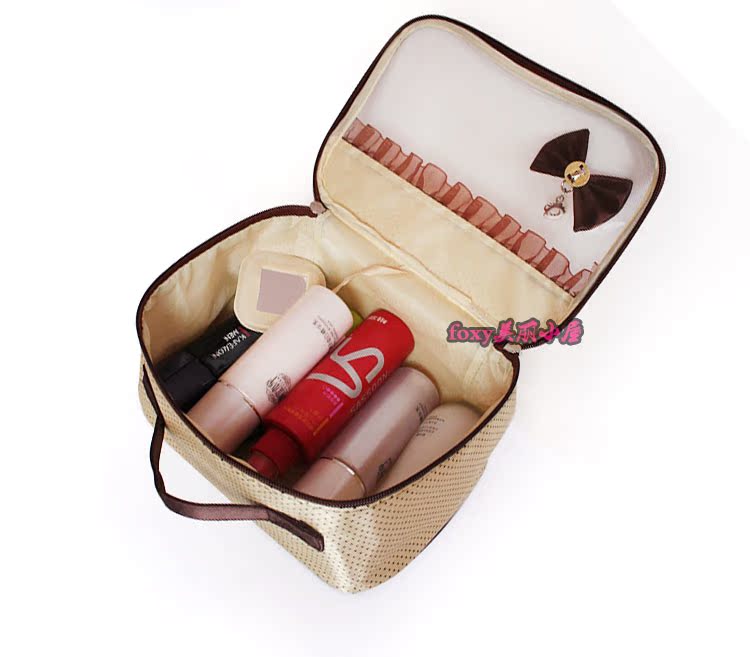 半透明四方體化妝包 可愛花邊蝴蝶結 韓國可愛大容量收納包郵