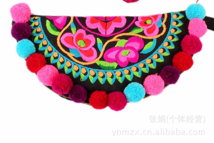 寶貝材質:棉麻+繡花+絨球