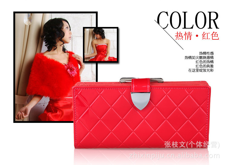 韓版錢包 女 新款漆皮閃鉆五金菱格長款女士錢包手拿包批發