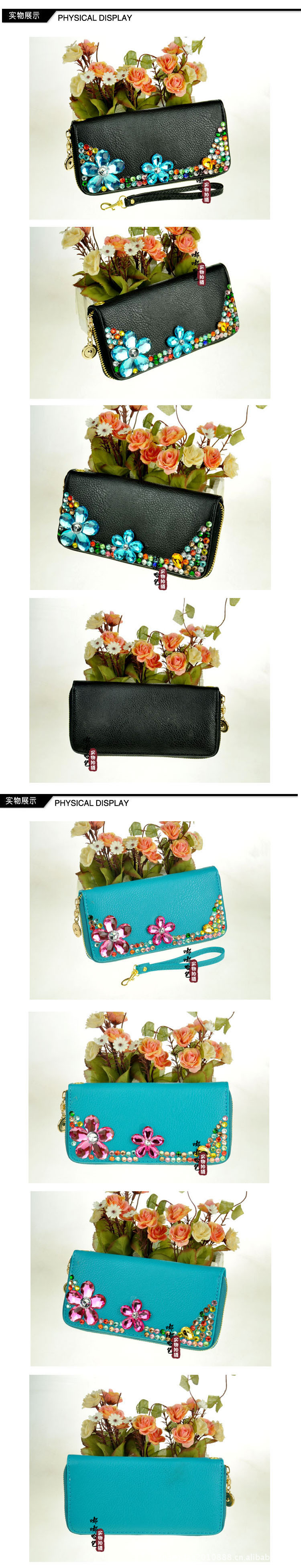 新款包郵2012日韓風范 手工鑲鉆中長款女士錢包錢夾 水鉆手拿錢包