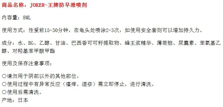 久客joker持久噴劑延遲射精時間增強男性能力夫妻情趣成人情趣用品