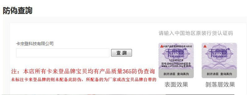 本店銷售的卡來登所有產品都可以官網查詢真偽