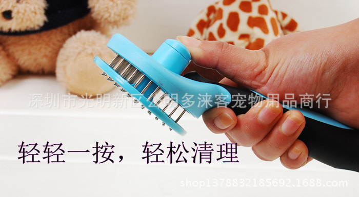 針面長:8cm; 針面寬:5cm; 1、手柄部位采用TPE、PP環保材料,不會引起寵物或人體皮膚過敏 2、刷頭自潔功能,隻需輕推刷頭背面的按鈕即可輕松祛除刷頭上的毛發。 3、有效防止靜電,並且在給寵物進行毛發護理的同時又可對皮膚起到按摩作用。 4、本品適用於各類貓犬的日常毛發梳理及按摩。 | |