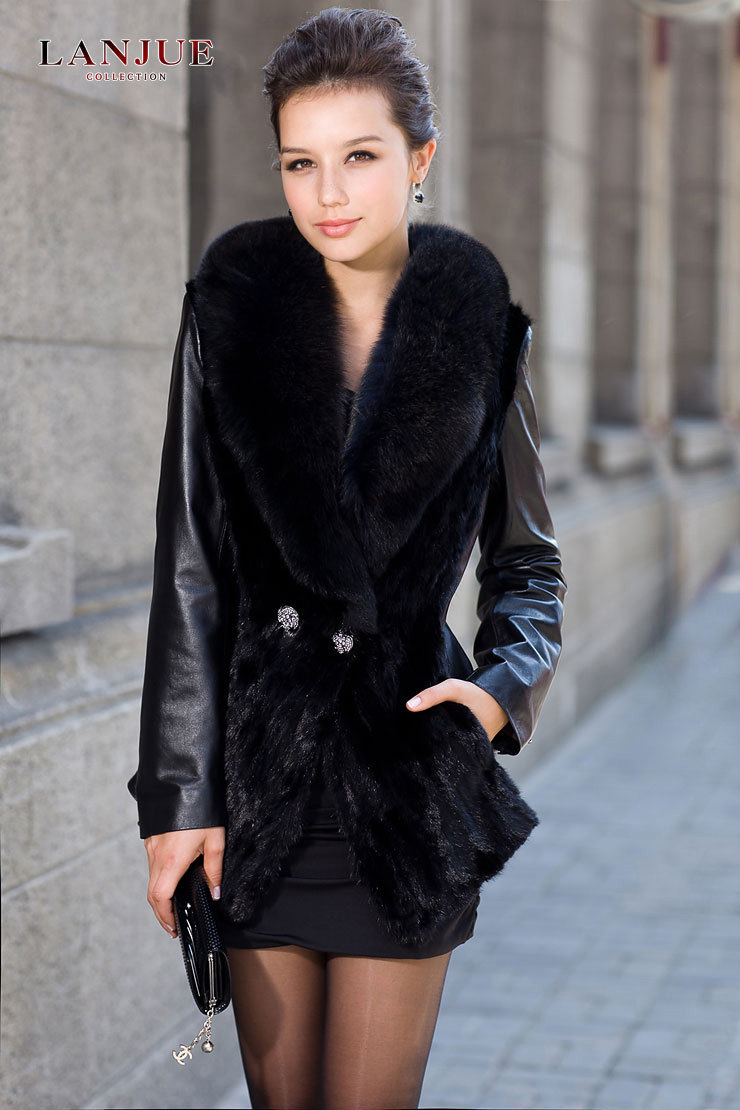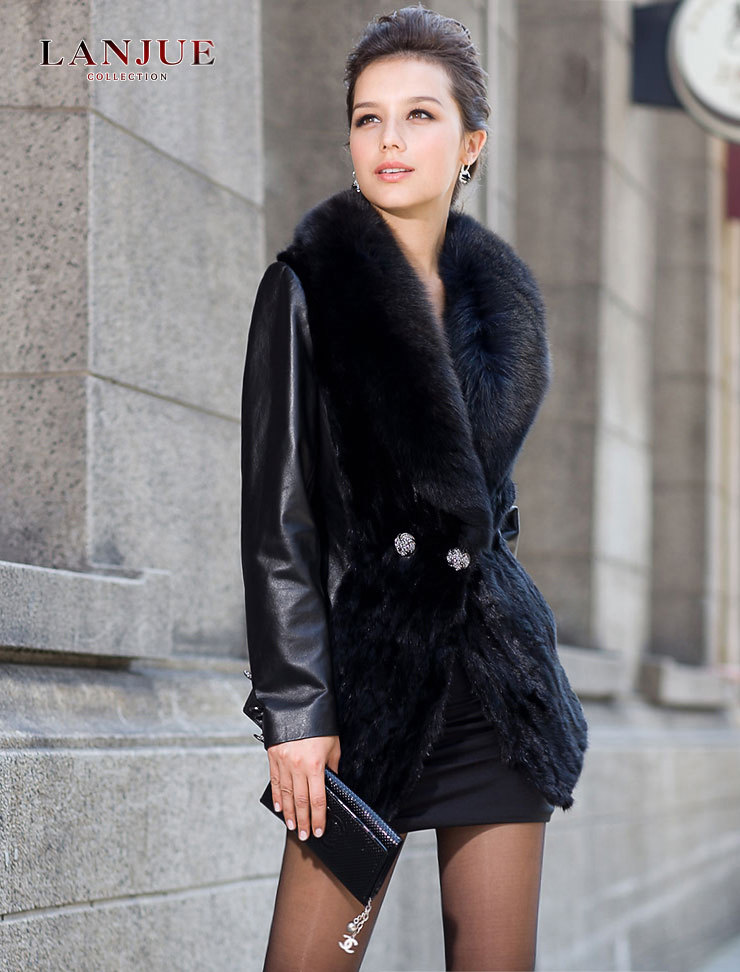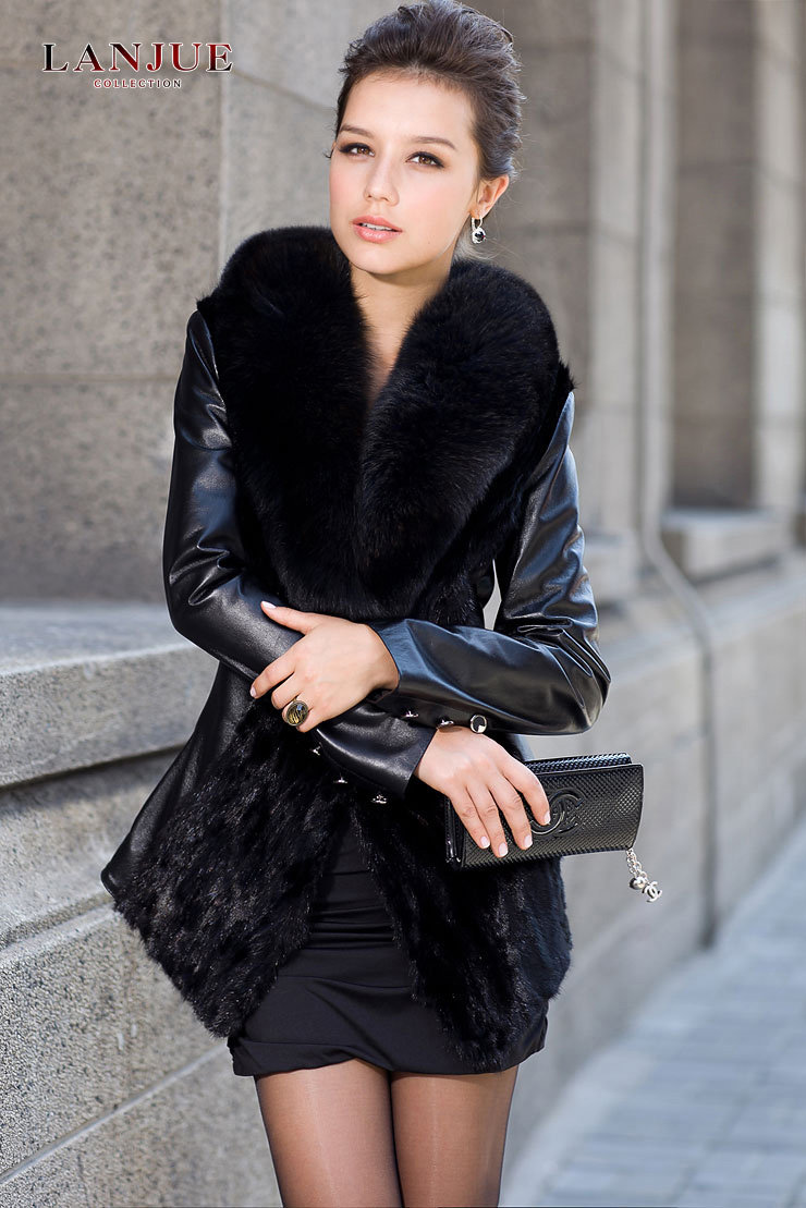 - 產品型號:嵐爵 2012女裝新款 綿羊皮 真皮皮衣 女 拼貂外套 大狐貍毛領1002