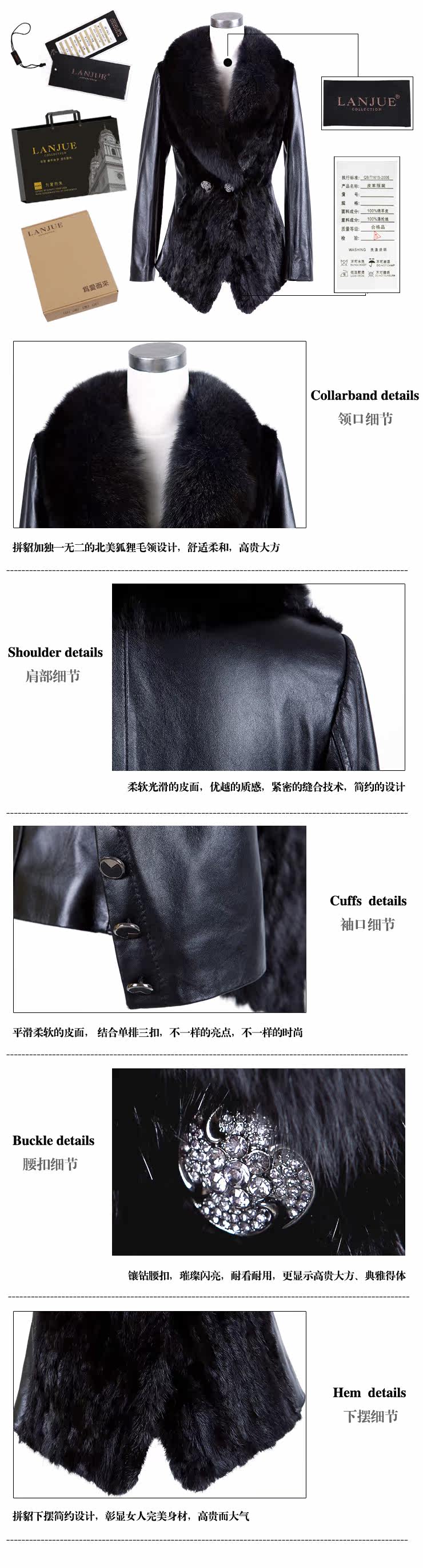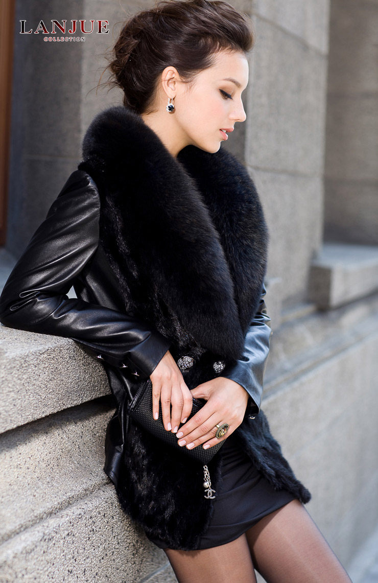 - 產品品牌:嵐爵 2012女裝新款 綿羊皮 真皮皮衣 女 拼貂外套 大狐