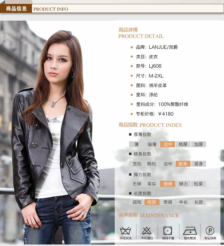 本公司供應嵐爵 2012新款 皮衣 女 真皮 綿羊皮 韓版修身 女裝款外套 Lj608質量保證,歡迎咨詢洽談。