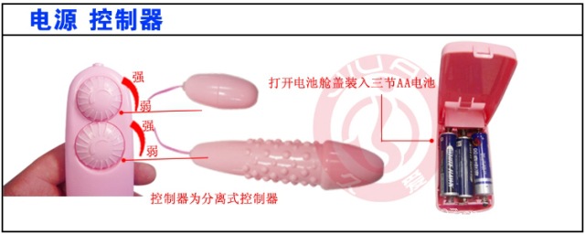 【用法用量】按電池盒圖示裝好電池(本品使用兩節五號電池),打開開關調節變頻按鈕,震動功能可刺激陰蒂等敏感區域。