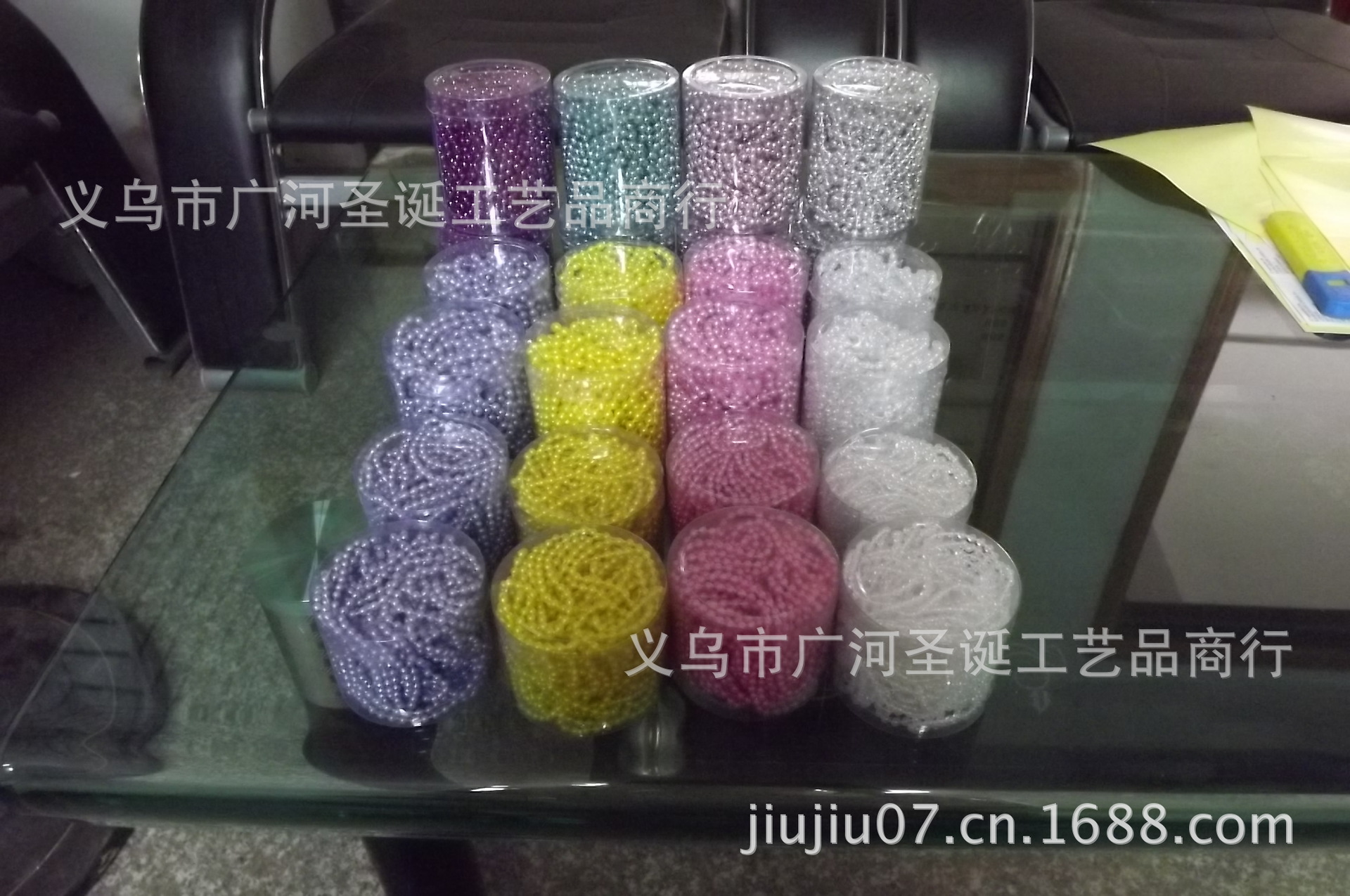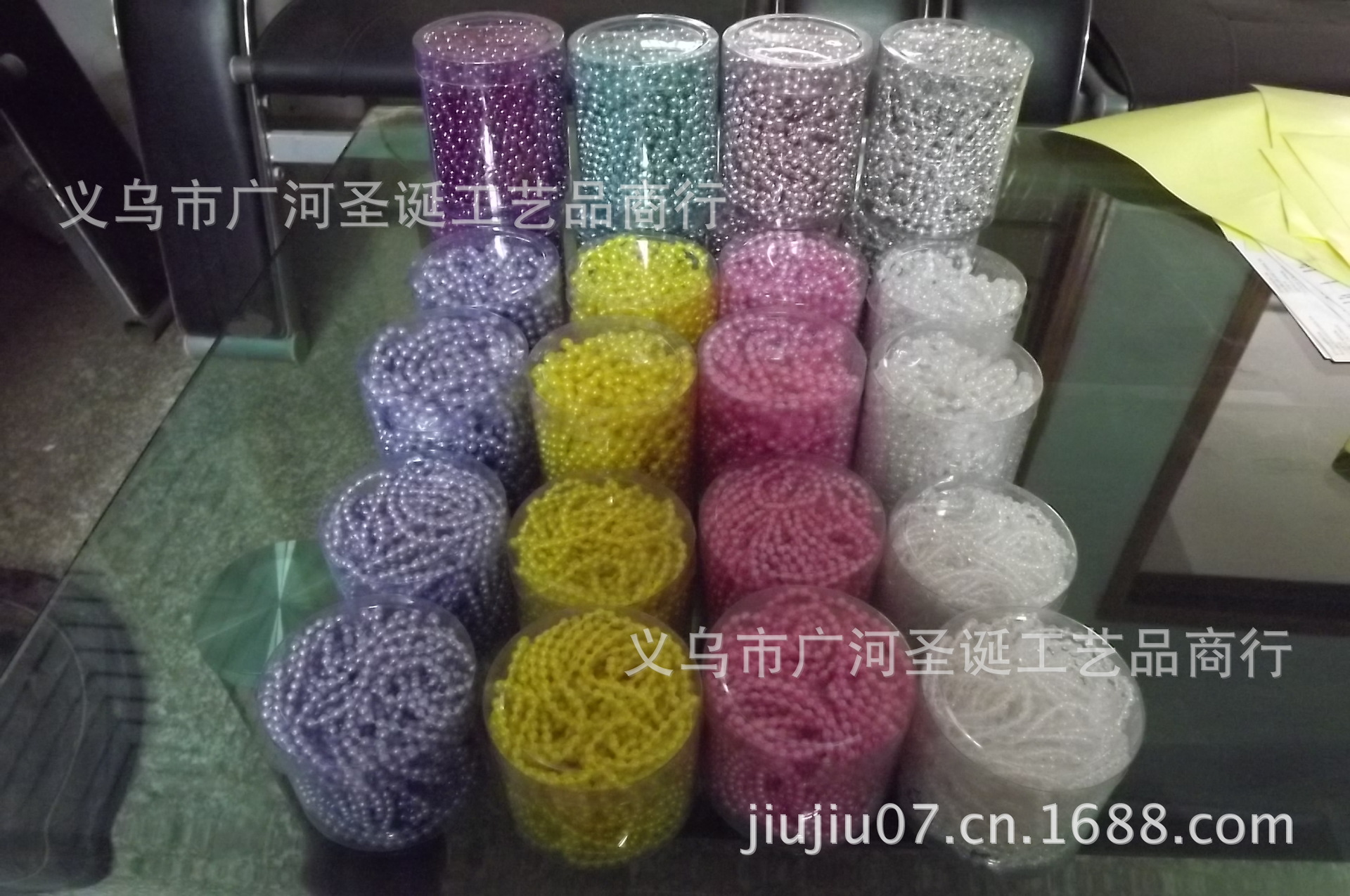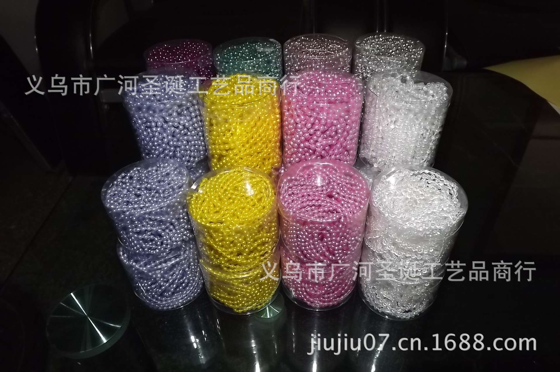品名:聖誕珠鏈入PVC圓桶 珍珠色
