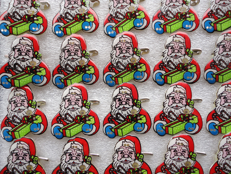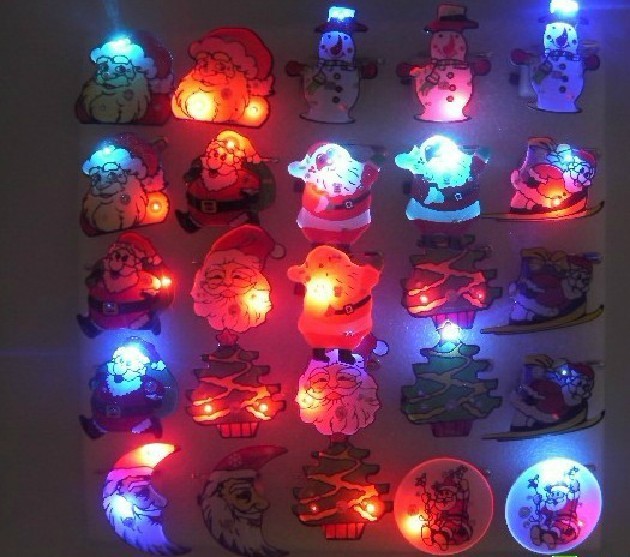 聖誕節禮品裝飾品,元旦,演唱會,酒吧裝備!有各種形狀,可以別包包上,衣服上等等(後面有別針,可以隨意別到你想放置地方),後面有開關,內部電子配好的,三個LED燈,兩紅燈一藍燈,打開開關發出閃爍個光芒,絢麗多彩,讓人感覺眼花繚亂,絕對你是主角。