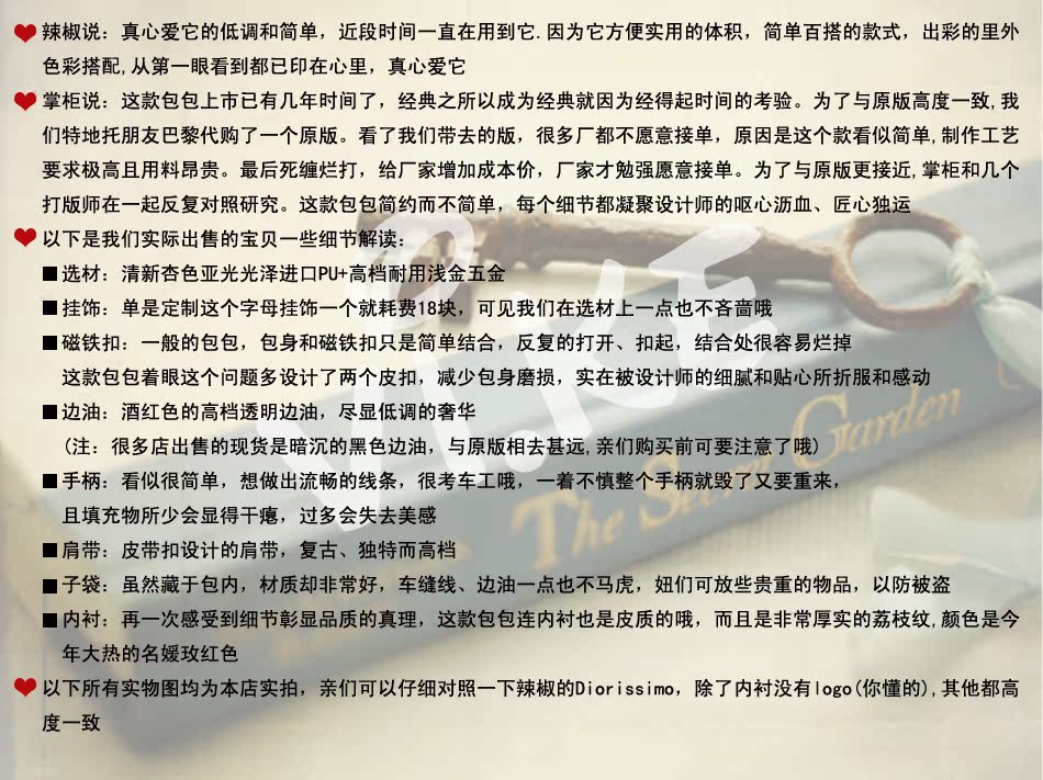 寬:36cm包高:29cm 底厚:13.5cm 手柄高:12cm 斜跨帶總長106cm(可裝卸6孔可調節) 贈送小零錢袋規格:長 27.5cm 高 18cm 厚度 0.5cm