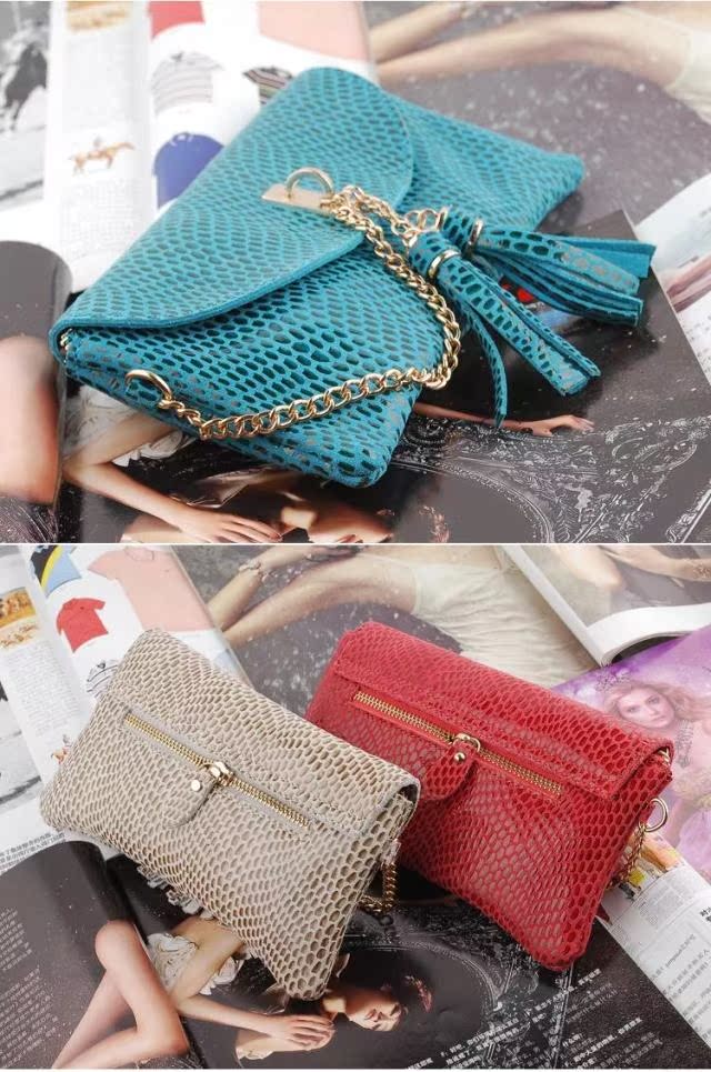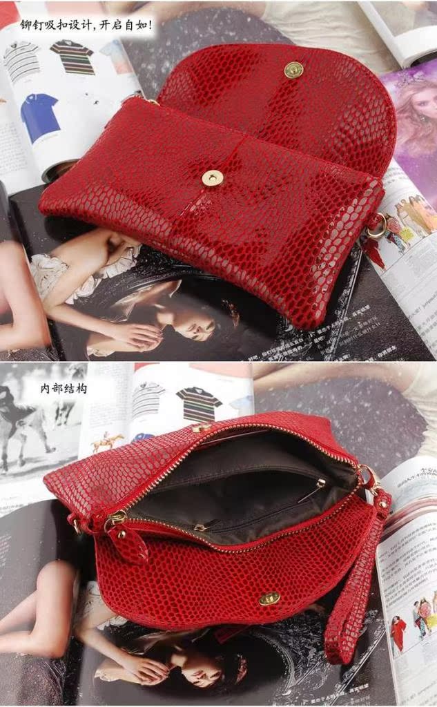 韓版真皮手包 女 蛇紋女包牛皮女士手拿包手抓包單肩斜挎包包