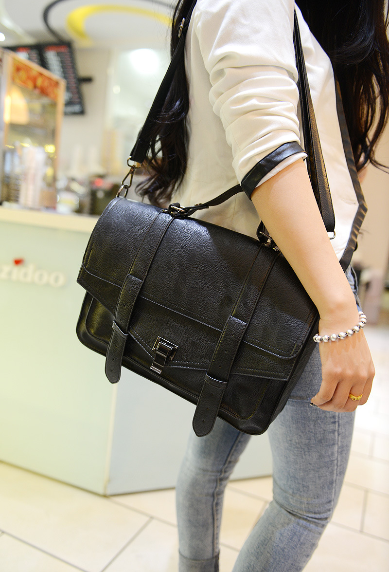 新款女包批發 歐美復古皮帶裝飾手提斜跨包 朋克風 外貿公文包