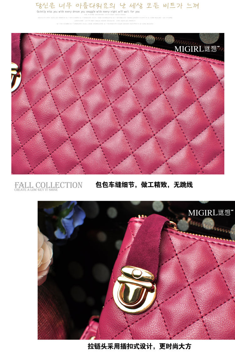 包包整體經典車縫線立體菱格紋