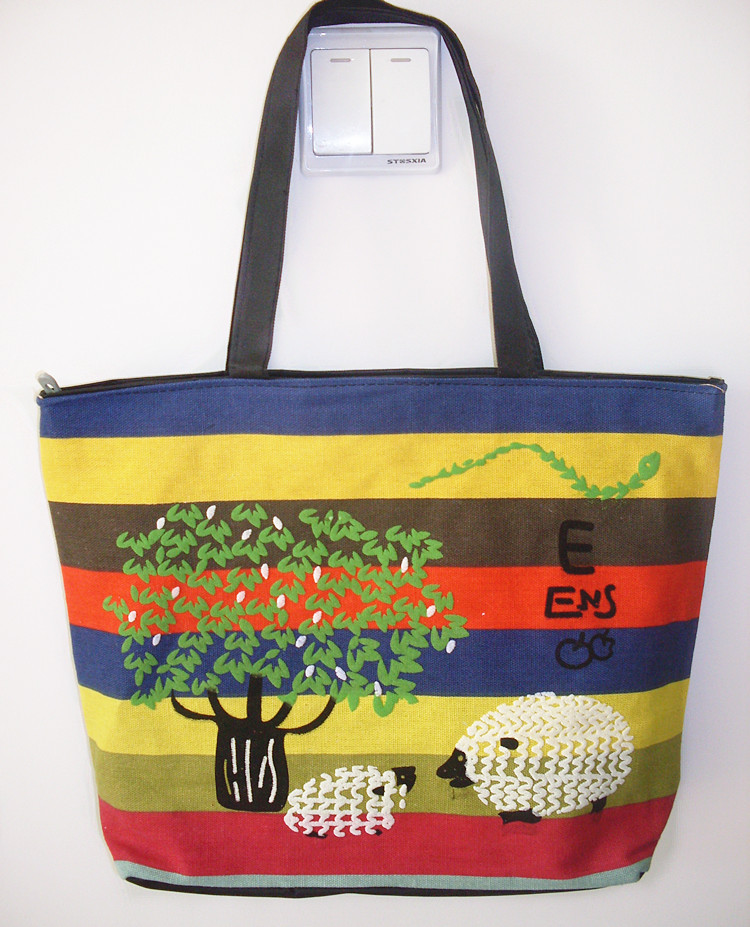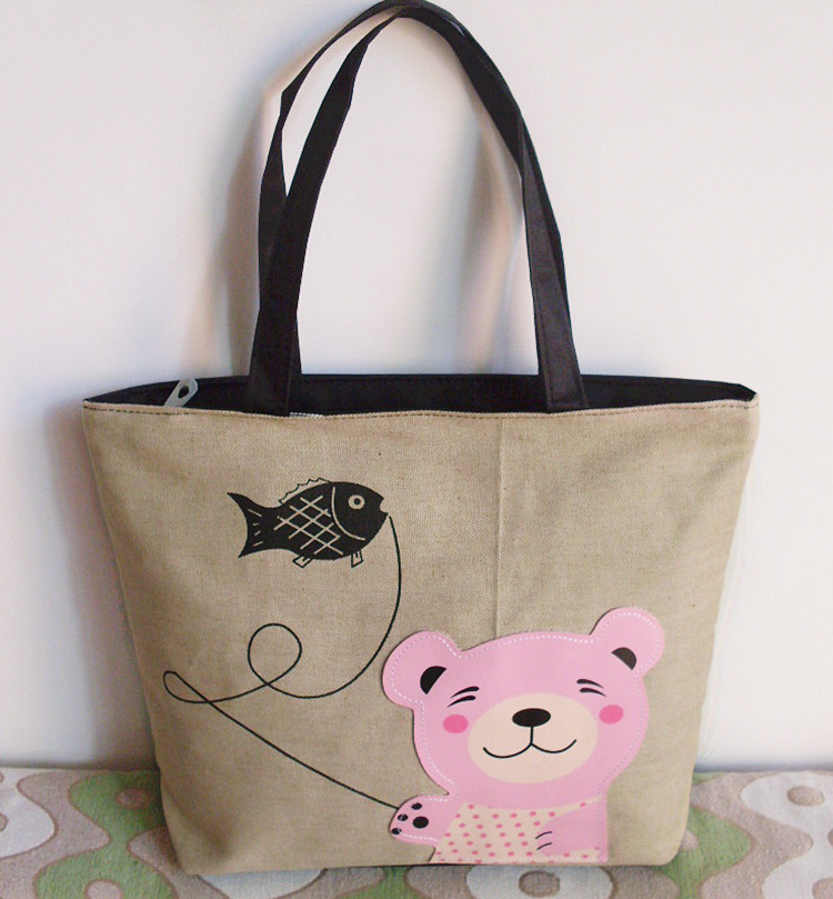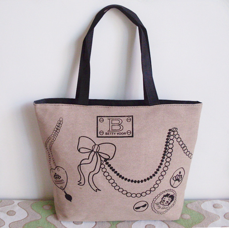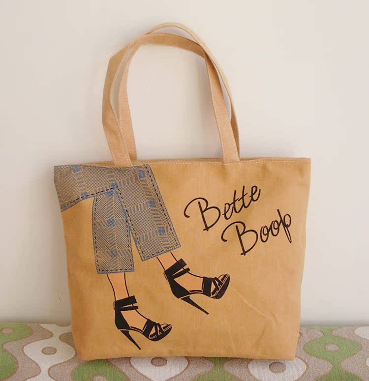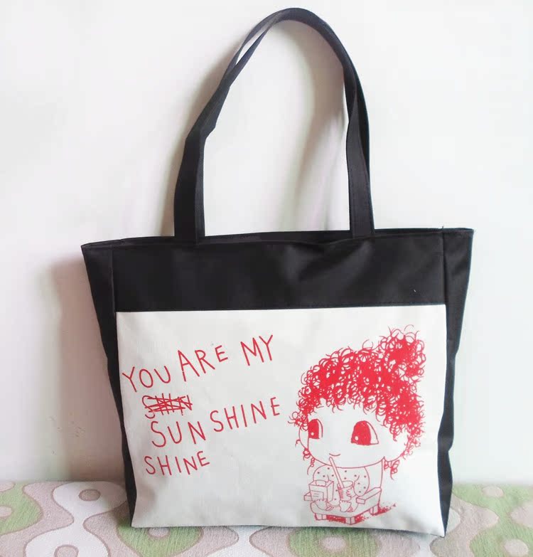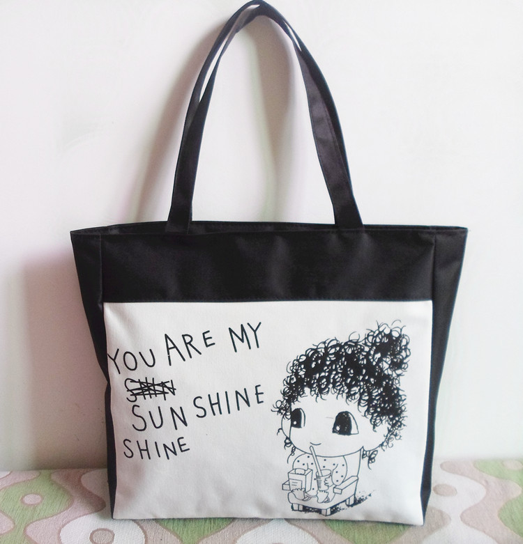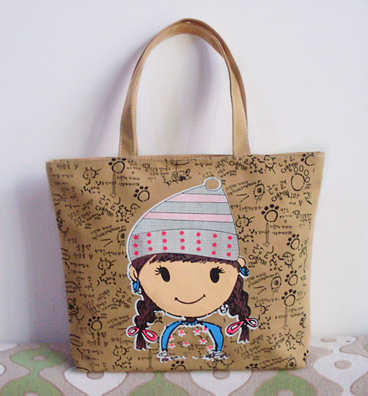 名稱:簡約帆布單肩包 春季爆款時尚卡通女包 休閒佈藝包批發