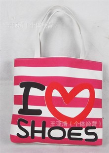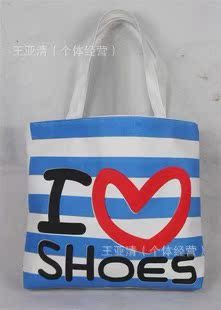 批發條紋帆佈包包環保袋手提購物袋單肩女包I心包印花包