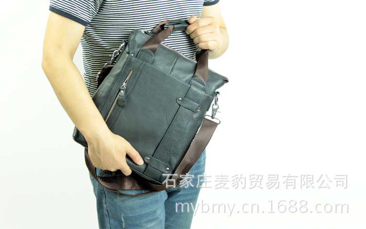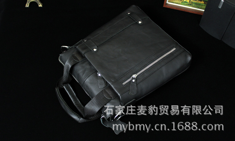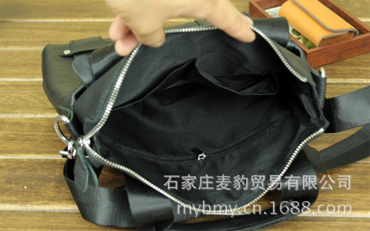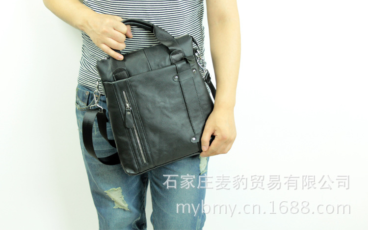全頭層牛皮 男式手提包 商務休閒真皮男款單肩斜挎包 時尚男皮包