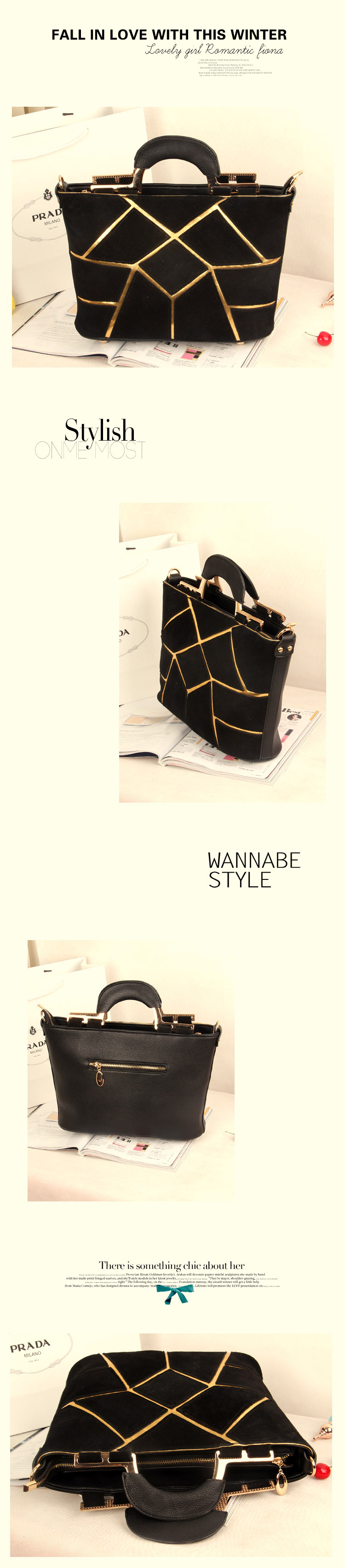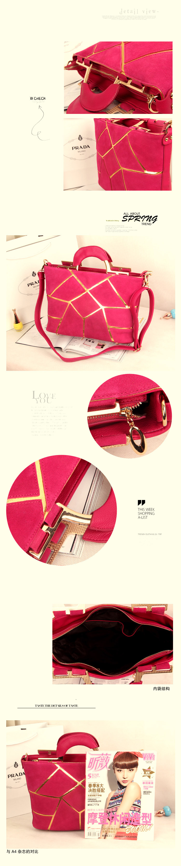 2013秋冬新品 歐美復古磨砂真皮高檔幾何拼接手提包單肩斜跨女包