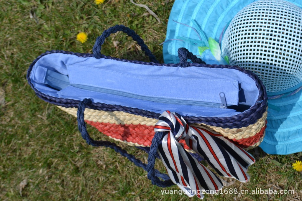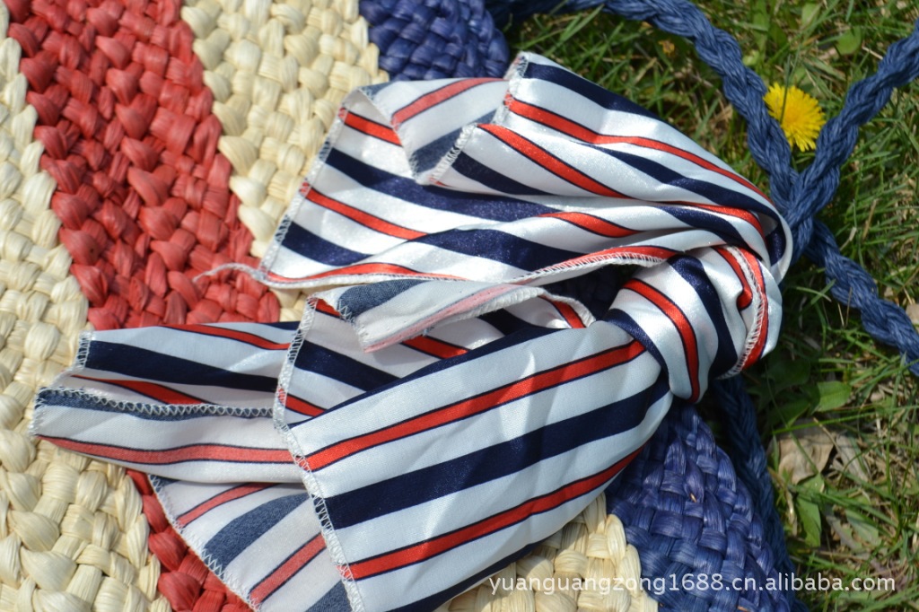 國際流行色藍白紅條紋絲巾沙灘包時尚草編單肩女2013新款編織歐美